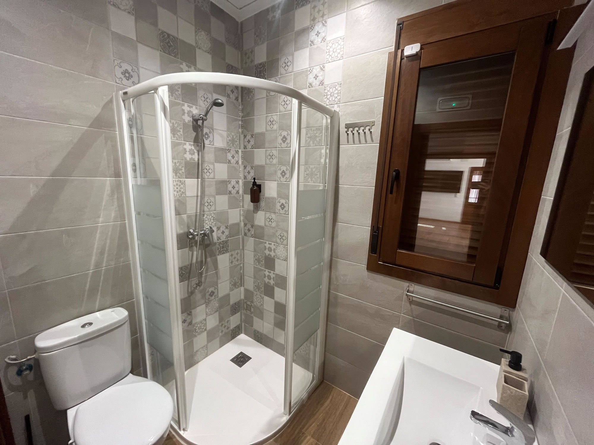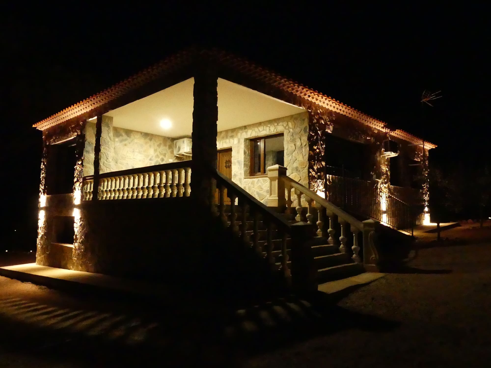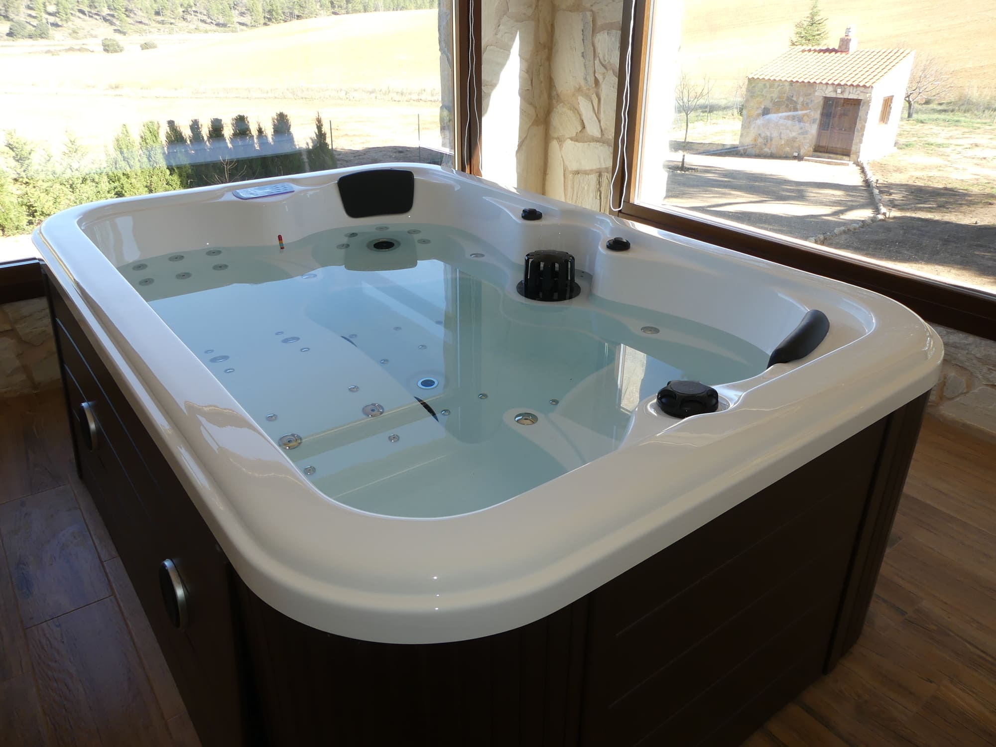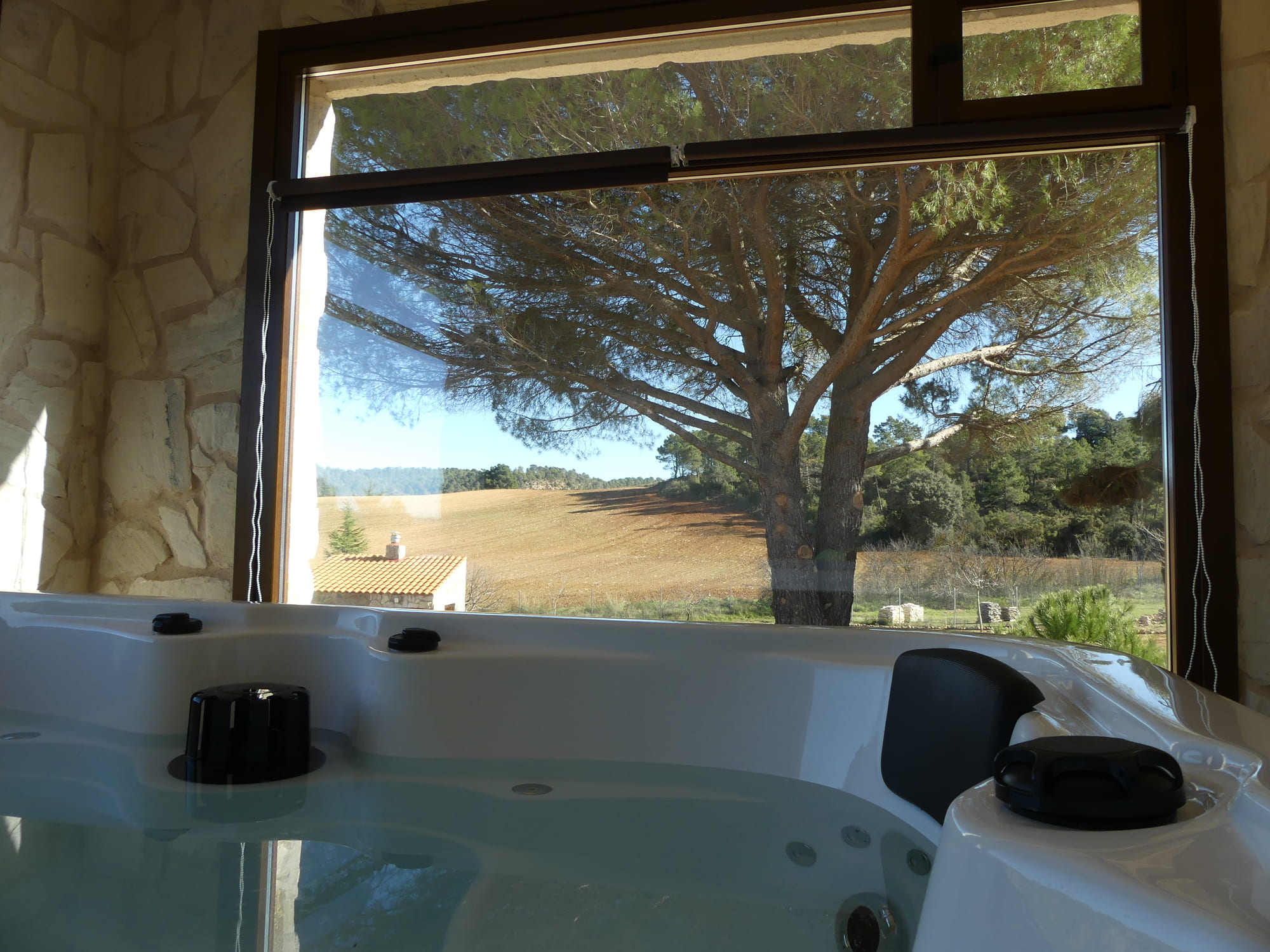 Casa entera. Aire acondicionado. Estufa de leña. Televisión. Jacuzzi (con suplemento). Piscina. Barbacoa. Electrodomésticos (lavadora, lavavajillas, horno, vitrocerámica, microondas, nevera-frigorífico). Se admiten mascotas. Vistas. Ducha.